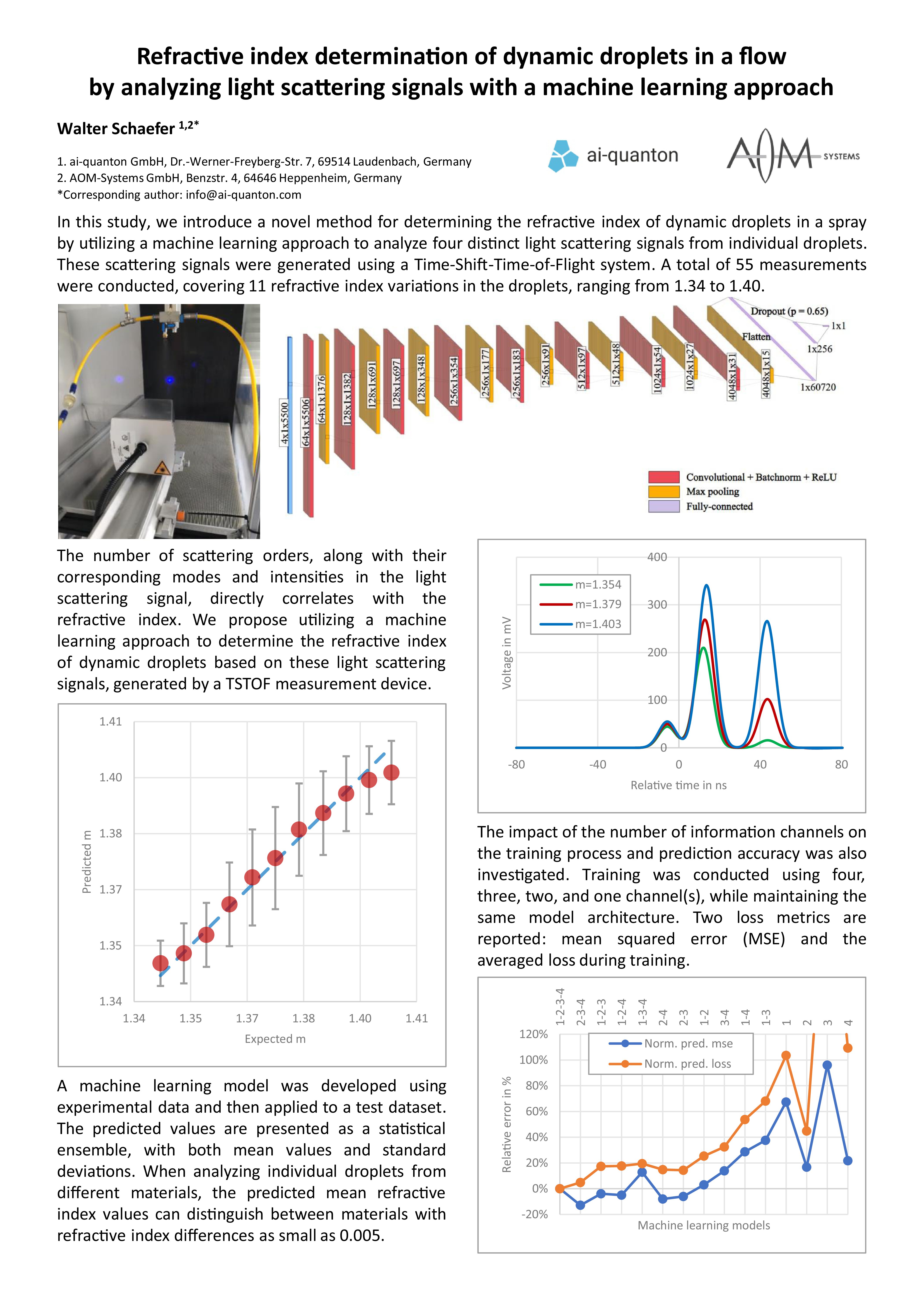 Refractive index determination of dynamic droplets in a flow by analyzing light scattering signals with a machine learning approach