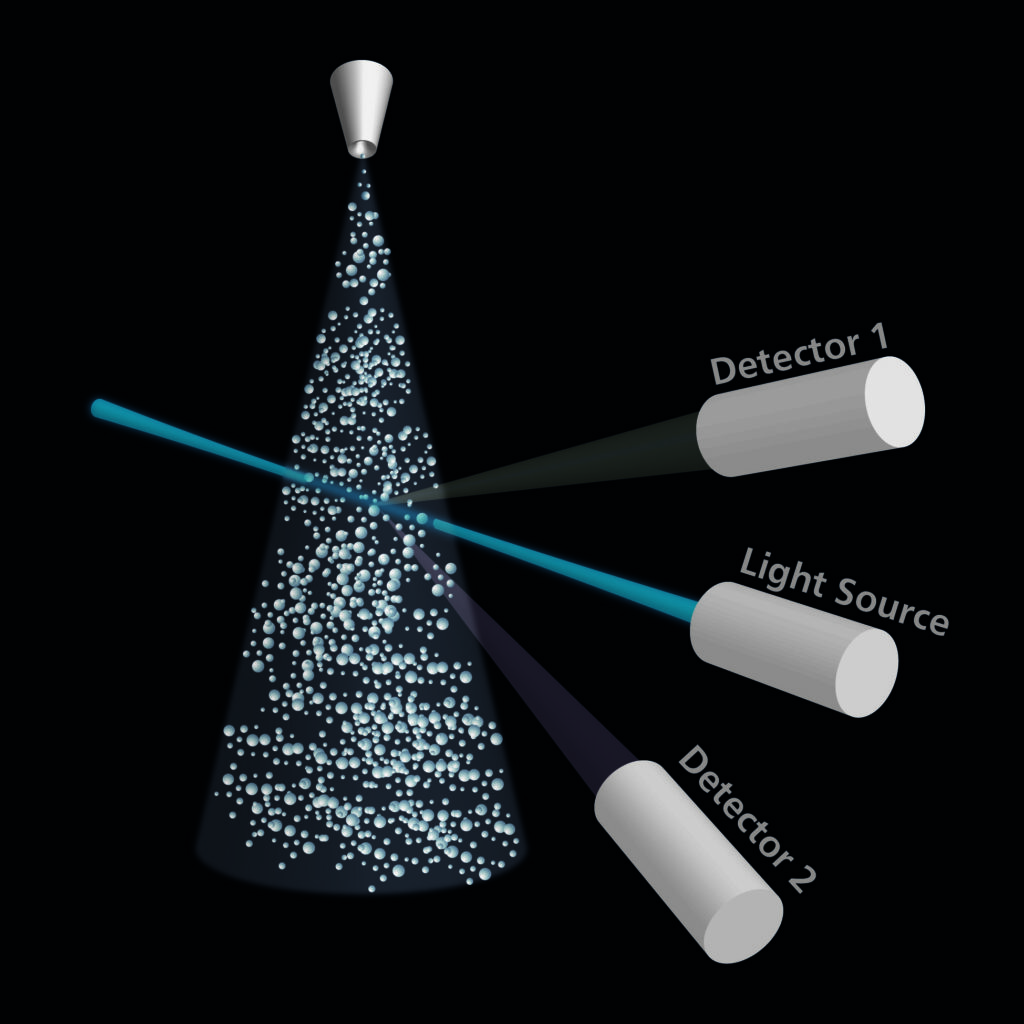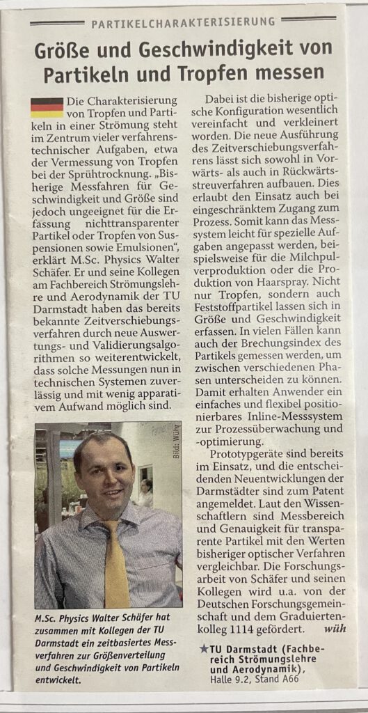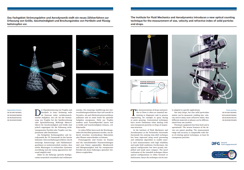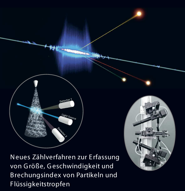 Researchers at the TU-Darmstadt have developed a new technique to measure the size and velocity of droplets and particles in a flow. The new method measures reliably also non-transparent particles and droplets of suspensions or emulsions. Industrial application areas include primarily diagnostics in processes such as spray drying, spray painting or in the food industry. The characterization of droplets and particles in a flow is a central diagnostic problem for many research and development tasks; however conventional techniques are largely unsuitable for processing non-transparent particles or particles with solid content such as suspensions. Researchers at the Institute of Fluid Mechanics and Aerodynamics at the TU-Darmstadt have improved existing time-shift technique to enable reliable size and velocity measurements of such particles.